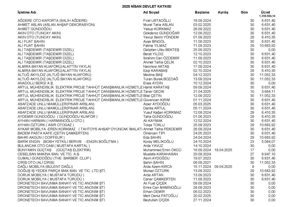 2025 Nisan Devlet Katkısı